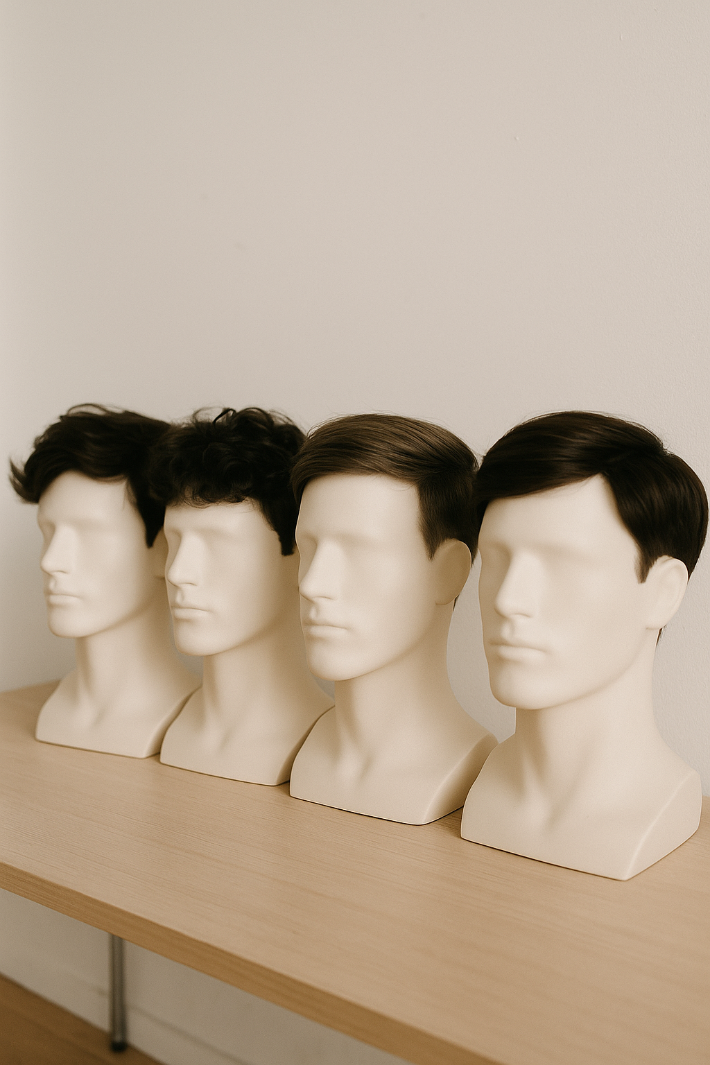 A custom hair system is a non-surgical hair replacement solution designed specifically for you. Unlike generic wigs or toupees, we tailor every detail - including hairline shape, density, colour, and texture - to ensure your system looks natural, feels comfortable, and blends seamlessly with your own features.